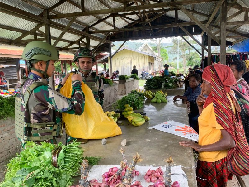 Borong Hasil Bumi Satgas Yonif 521/DY Membantu Meningkatkan Perekonomian Warga di Pasar Bolakme