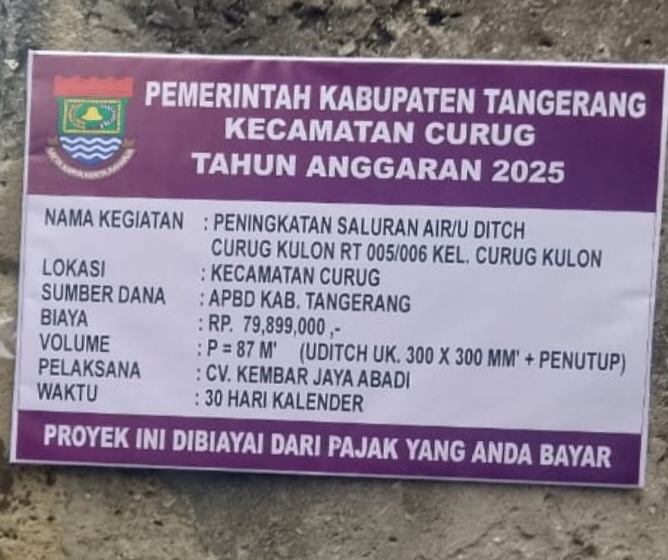 Yang lebih disayangkan, pengawasan dari pihak Kecamatan Curug seakan tutup mata. Sebagai pengawas lapangan, mereka semestinya memastikan pekerjaan berjalan sesuai aturan dan spesifikasi teknis. Namun hingga kini belum ada langkah nyata yang terlihat.