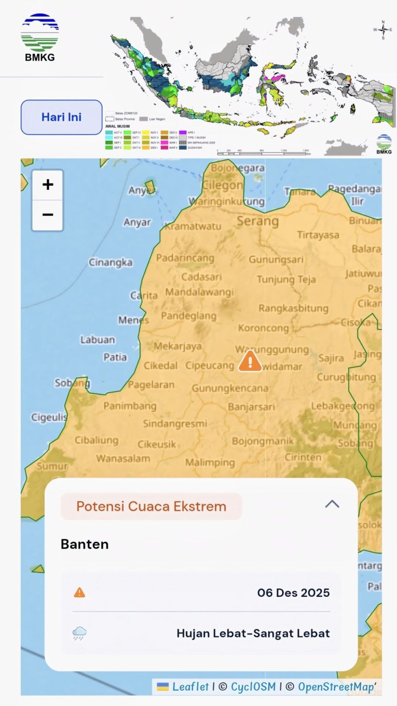 “Cuaca dapat berubah secara cepat. Tetap waspada, utamakan keselamatan, dan pantau terus informasi resmi dari BMKG. Polda Banten akan terus berkoordinasi dengan BMKG dan instansi terkait untuk memberikan informasi yang akurat kepada masyarakat,” tutupnya.