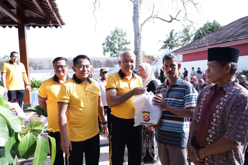 Dalam kegiatan ini, Polda Banten membagikan 150 paket sembako serta melaksanakan penyembelihan satu ekor sapi untuk kemudian dibagikan kepada masyarakat Cibebek.