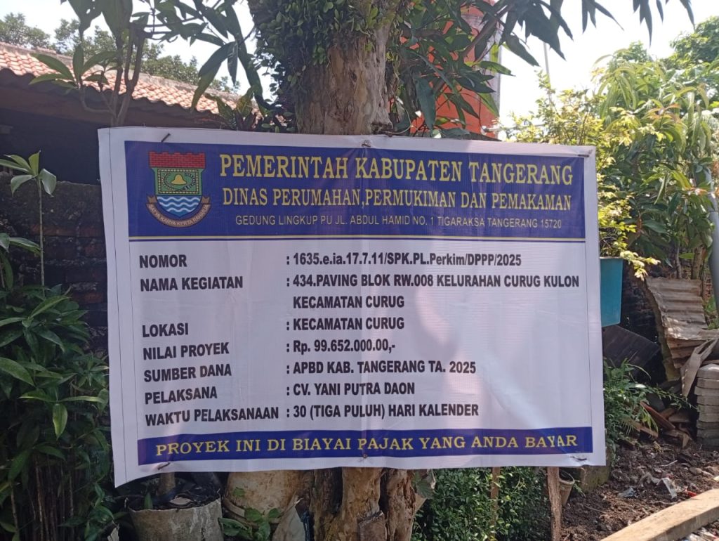BERITABUANANEWS.ID,Tangerang | Proyek pembangunan paving blok di RT 05/08, Kelurahan Curug Kulon, Kecamatan Curug, Kabupaten Tangerang, Banten, yang dikerjakan oleh CV Yani Putra Daon, kini berada dalam sorotan tajam publik. Hasil investigasi di lapangan mengindikasikan proyek tersebut diduga kuat sarat penyimpangan, mulai dari pencopotan papan informasi proyek, mutu pekerjaan yang dipertanyakan, hingga pengabaian total standar Keselamatan dan Kesehatan Kerja (K3).