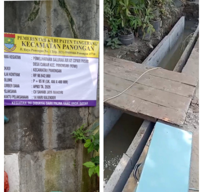 Berdasarkan informasi yang dihimpun, proyek tersebut dilaksanakan oleh CV. Sahabi Jaya Mandiri dengan nilai anggaran sebesar Rp98.942.000 yang bersumber dari APBD Kabupaten Tangerang melalui Kecamatan Panongan.