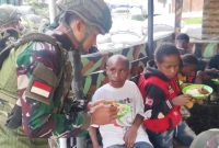 BERITABUANANEWS.ID,Yahukimo | Suasana penuh kehangatan dan kekeluargaan tampak di Pos Kurima Satgas Yonif 521/DY ketika Personel Pos menggelar acara makan bersama dengan anak Papua…